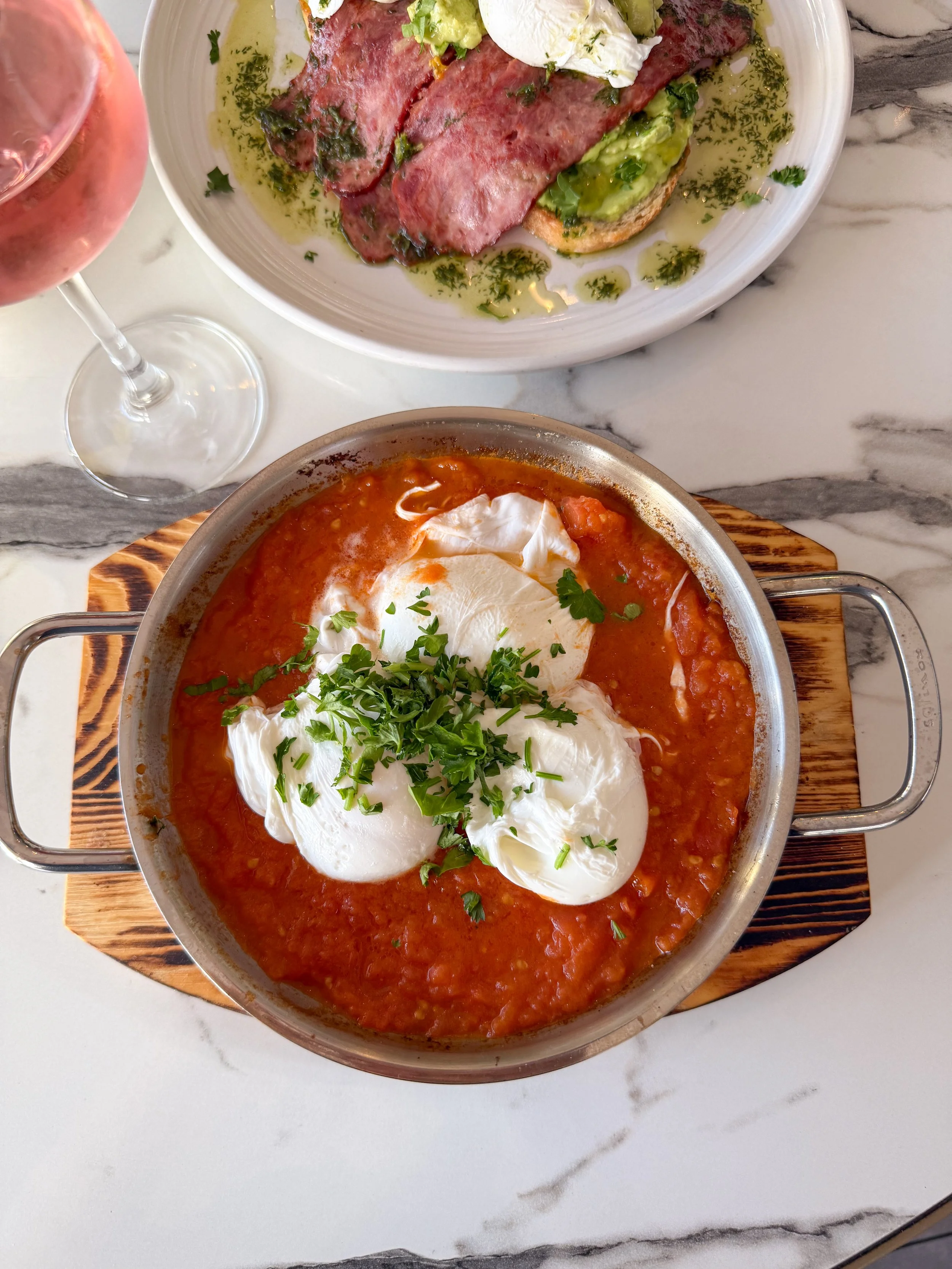 Lavender Cafe & Bistro has brunch available every day of the week. The menu includes both Mediterranean and American classics prepared with fresh, organic ingredients. Popular dishes I noticed include lavender pancakes, smashed avocado toast, and tiramisu French toast. For those wanting something more filling, the menu also features smash burgers and falafel sandwiches. They also offer an incredibly tasty shakshuka that we highly recommend.